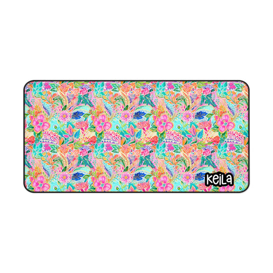 Personalized Cute Neon Colors Tropical Floral Desk Mat | Cute Desk Pads