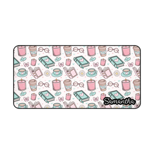 Personalized Cute Coffee and Books Themed Desk Mat | Cute Desk Pads
