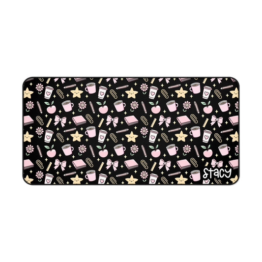 Cute Teacher Themed Desk Mat Black, Charming Desk Mat with Cute Stationery Design, Office Decor, Custom Desk Accessories, Gift for Students, Aesthetic Work Space