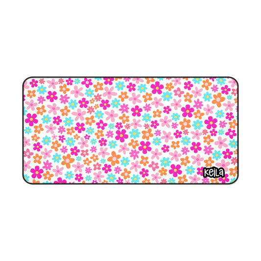 Personalized Vibrant Neon Color Daisies Desk Mat | Cute Desk Pads