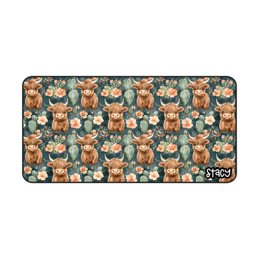 Cute Highland Cow Desk Mat | Floral Mouse Pad, Office Decor, Gift for Cow Lovers, Home Office Accessories, Animal Decor