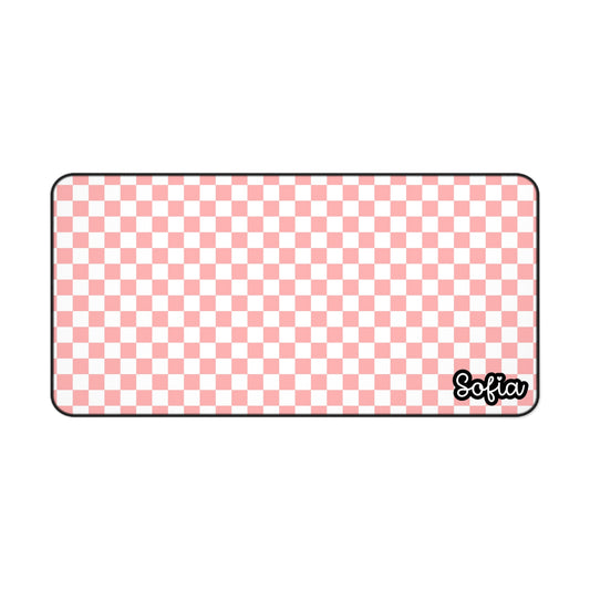 Boho Pink Checkered Desk Mat - Boho Chic Desk Mat - Personalized Desk Mat for Women, Office Decor, Gamer Gift, Study Mat, Custom Workstation Accessory