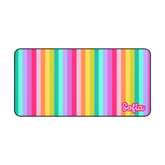 Colorful Stripes Personalized Desk Mat - Rainbow Stripes, Office Decor, Gift for Her, Home Office Accessories, Custom Name Mat