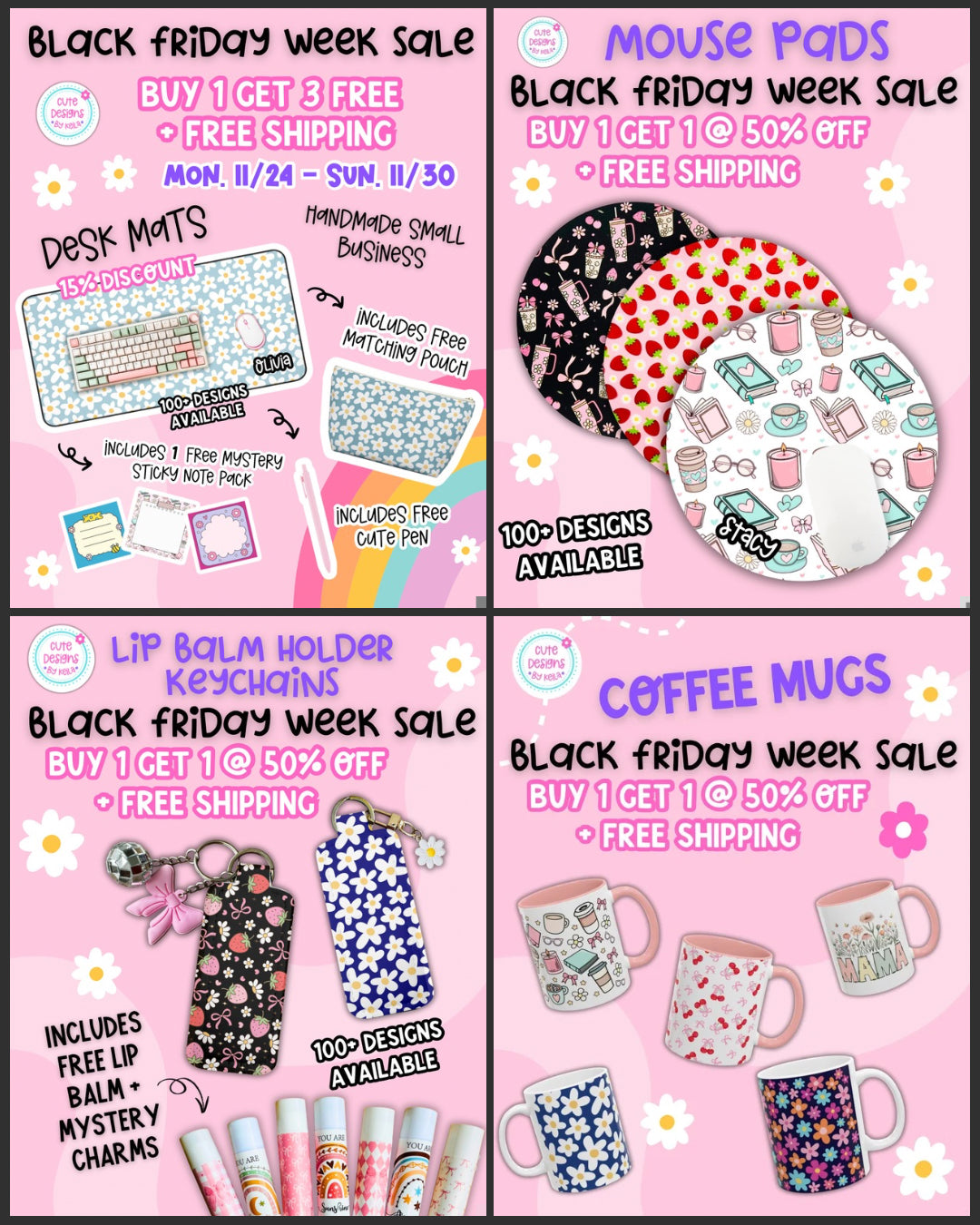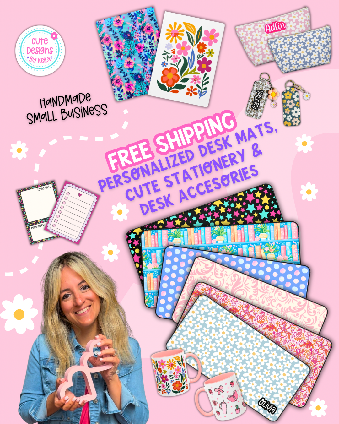 Matching mousepad, notebook, pen, pouch and bag charm/key chain lip balm holder - Personalization option available!