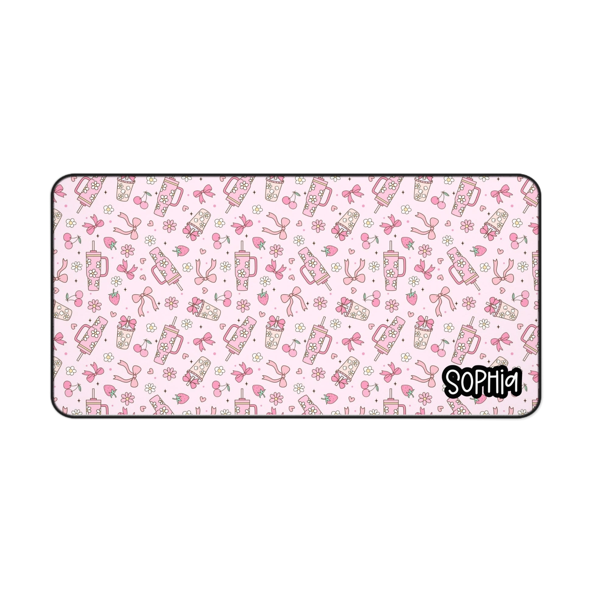 Cute Coffee & Ribbon Pattern | Pink Kawaii Desk Mat