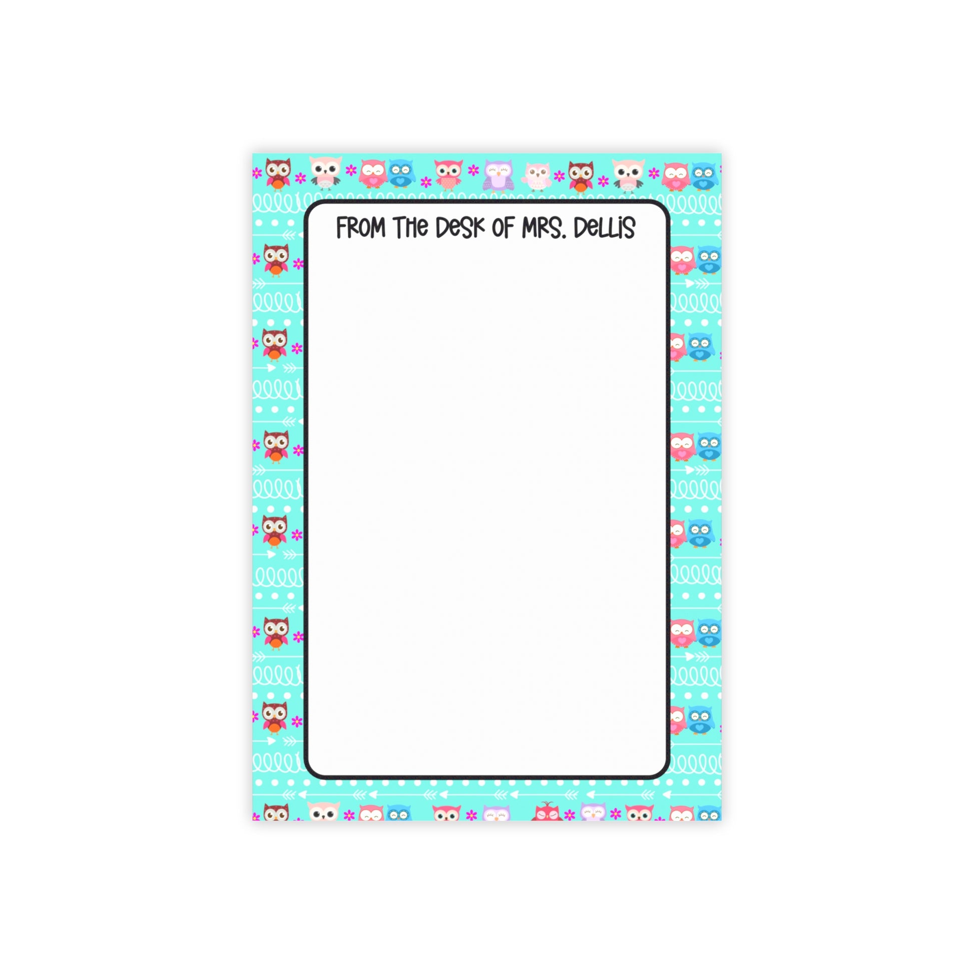Cute Custom Note Pads for Teachers, Personalized Sticky Notes, Owl Design Memo Pads, Appreciation Gift, Classroom Stationery