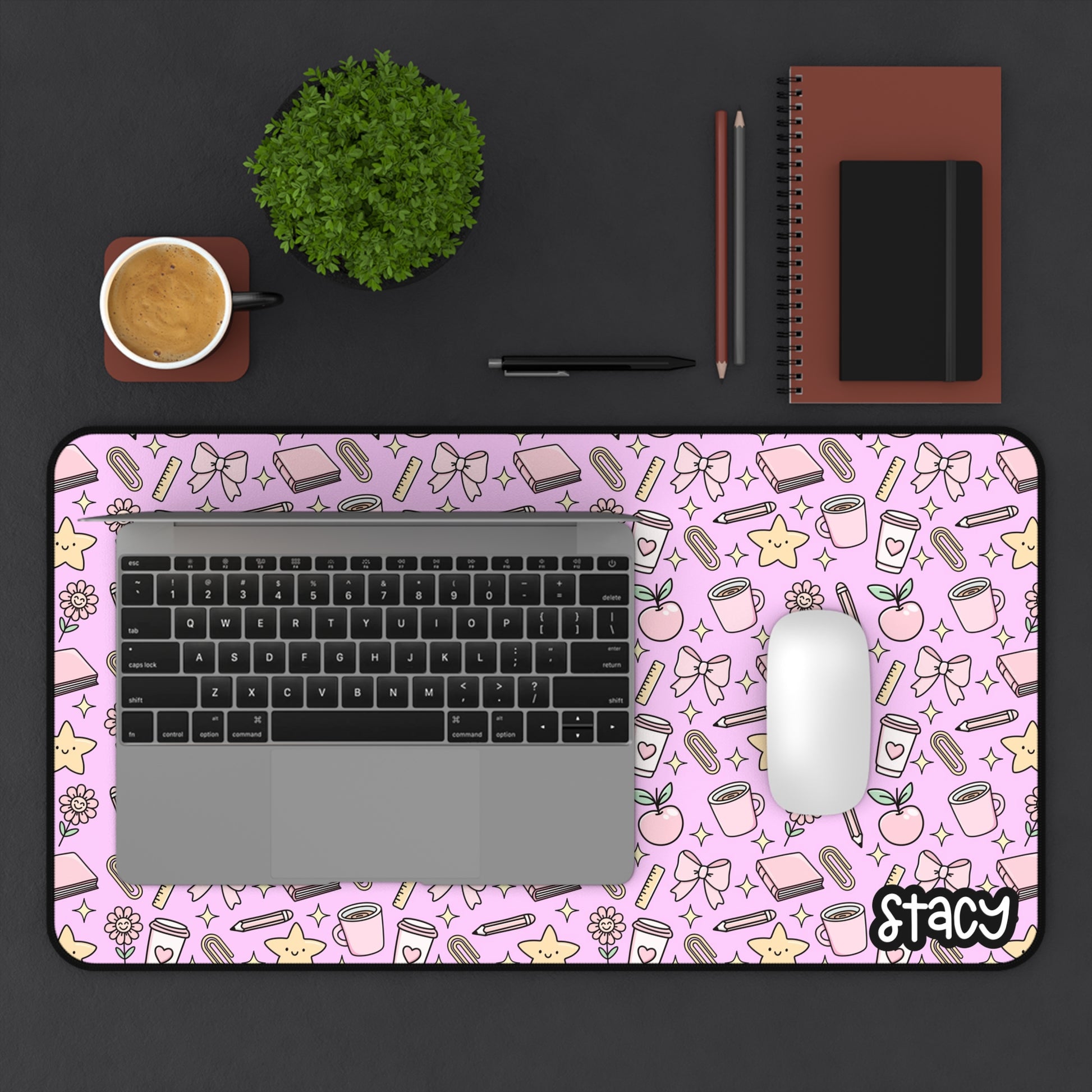 Cute Teacher Themed Desk Mat Pink, Charming Desk Mat with Cute Stationery Design, Office Decor, Custom Desk Accessories, Gift for Students, Aesthetic Work Space