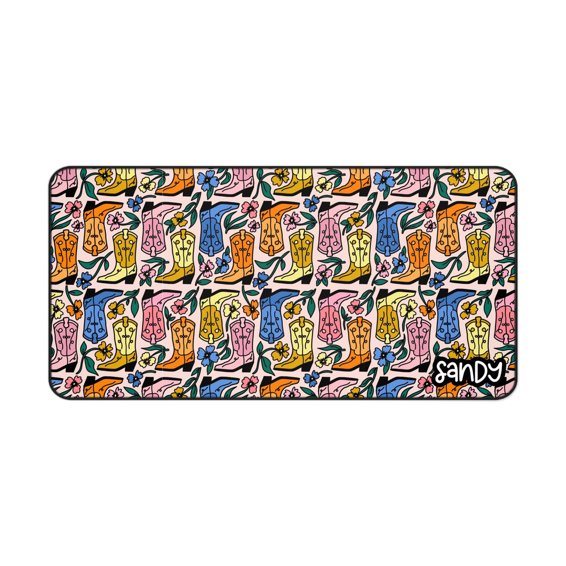 Boot Scootin’ Vibes” Personalized Desk Mat – Colorful Cowboy Boot Edition