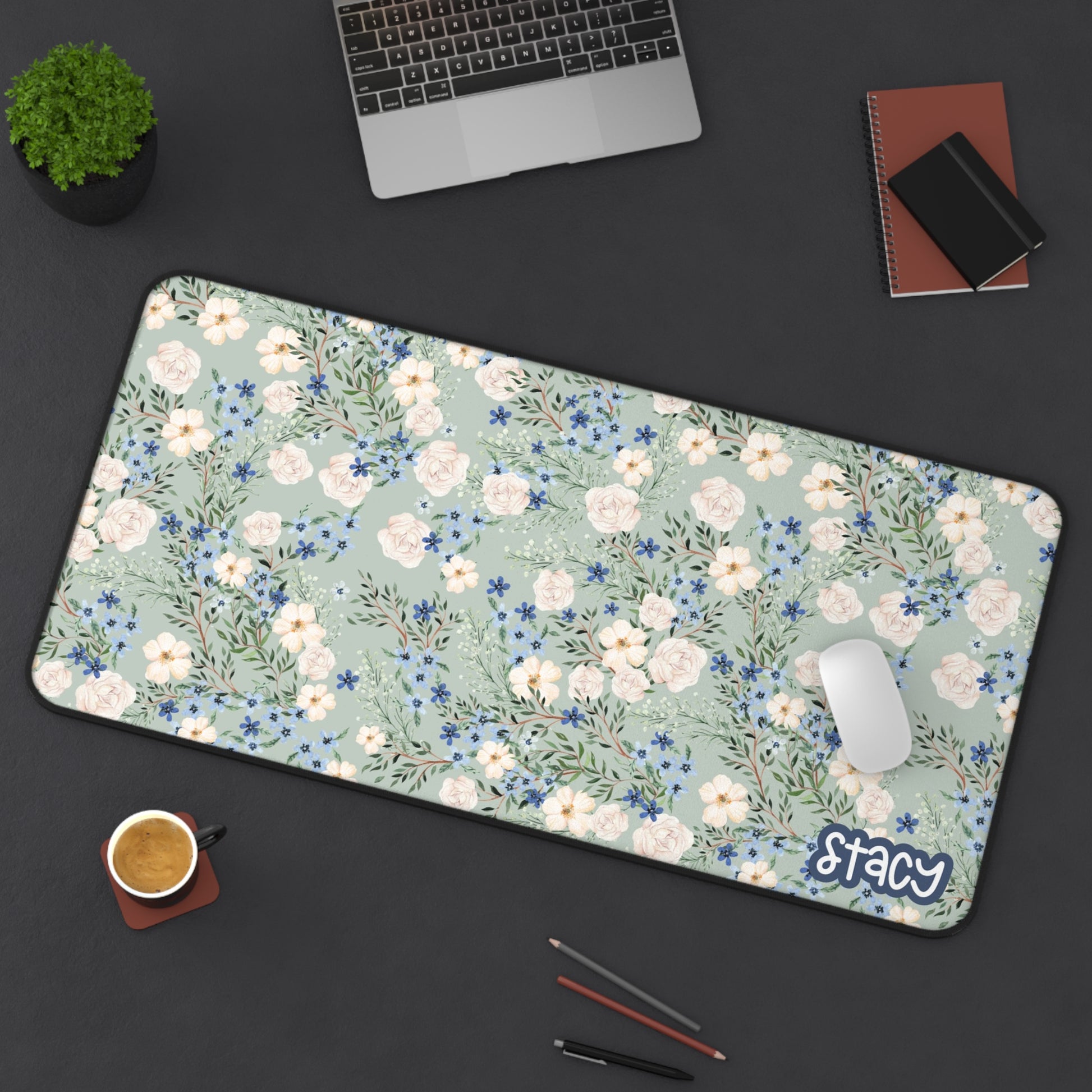 Floral Personalized Desk Mat, Office Decor, Home Office Accessories, Gift for Her, Custom Name Desk Pad
