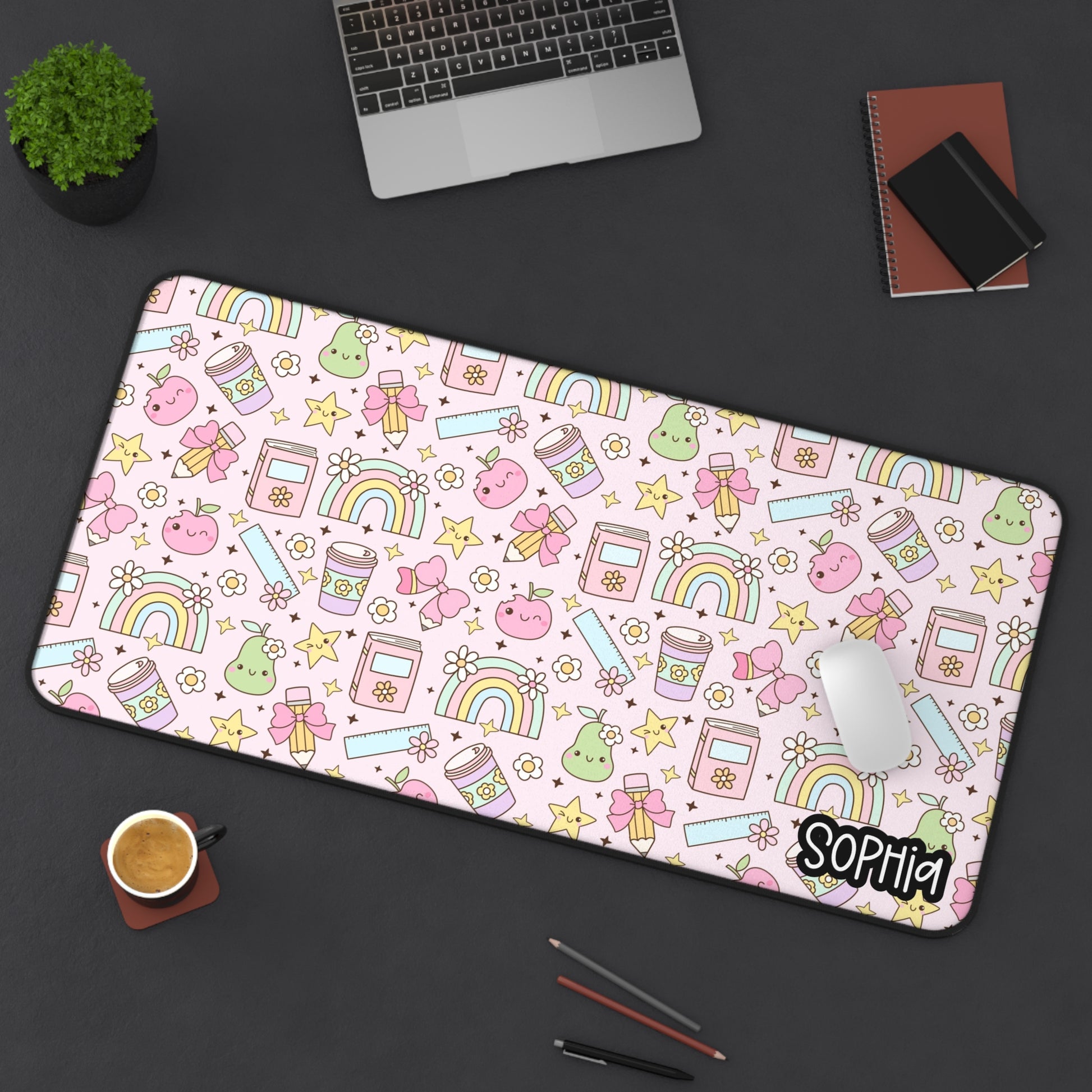 Soft Girl Era Teacher Desk Mat | Soft Pink Teacher Desk Mat | Pastel Kawaii Desk Mat - Cute Rainbows & Stars Personalized Mousepad