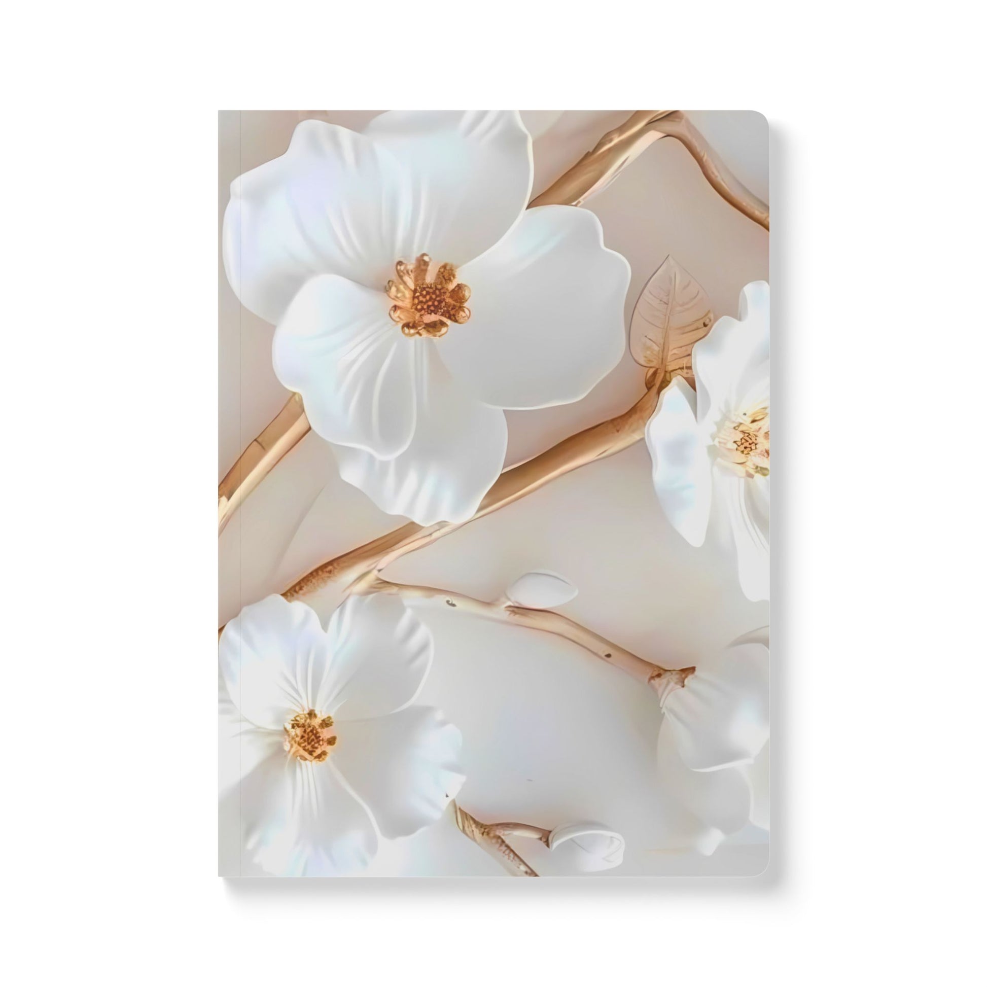 White & Gold Floral Leather Journal (faux leather), Elegant Floral Journal, Premium Notebook for Writing, Gift for Writers, Journaling, Junk Journal