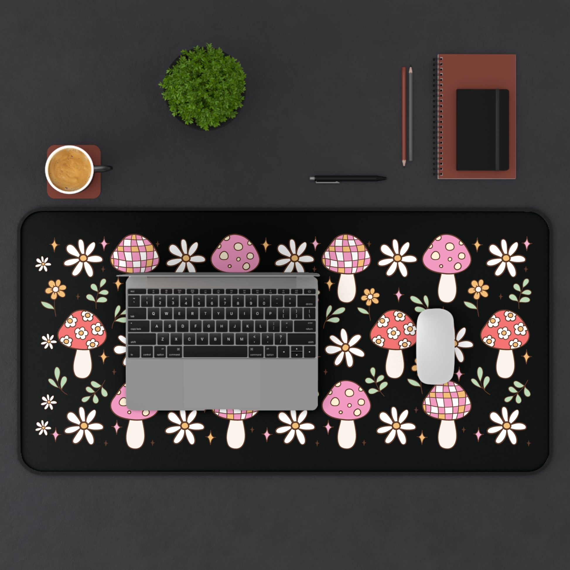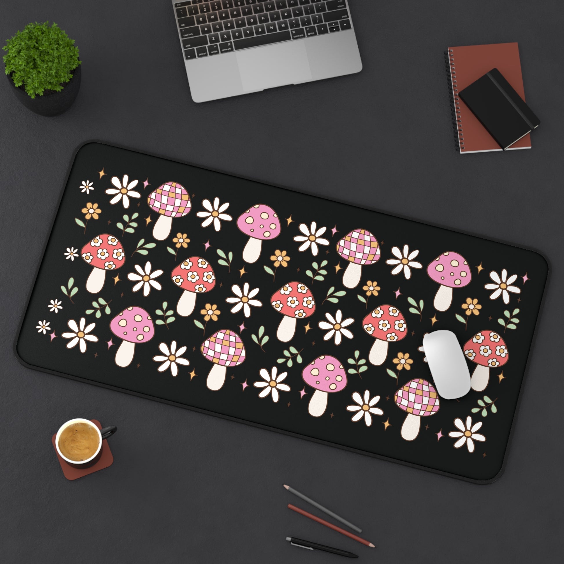 This Floral Mushrooms Desk Mat adds a touch of whimsy and nature to your workspace. The vibrant colors and detailed design create a cozy and creative atmosphere, perfect for artists, designers, and nature lovers. Ideal for use during work, crafting, or studying. Great for adding a pop of color to your desk during any season.