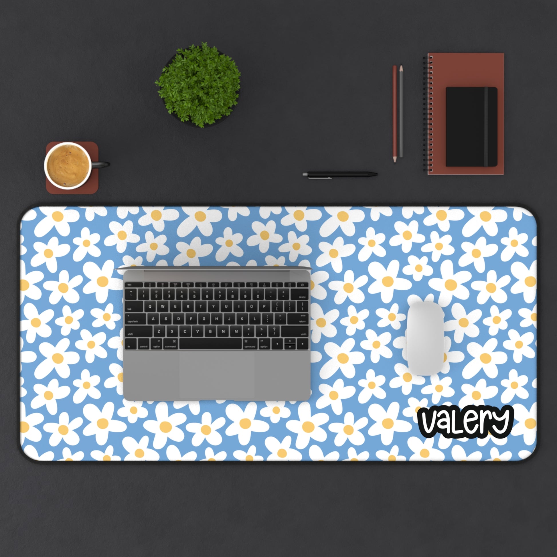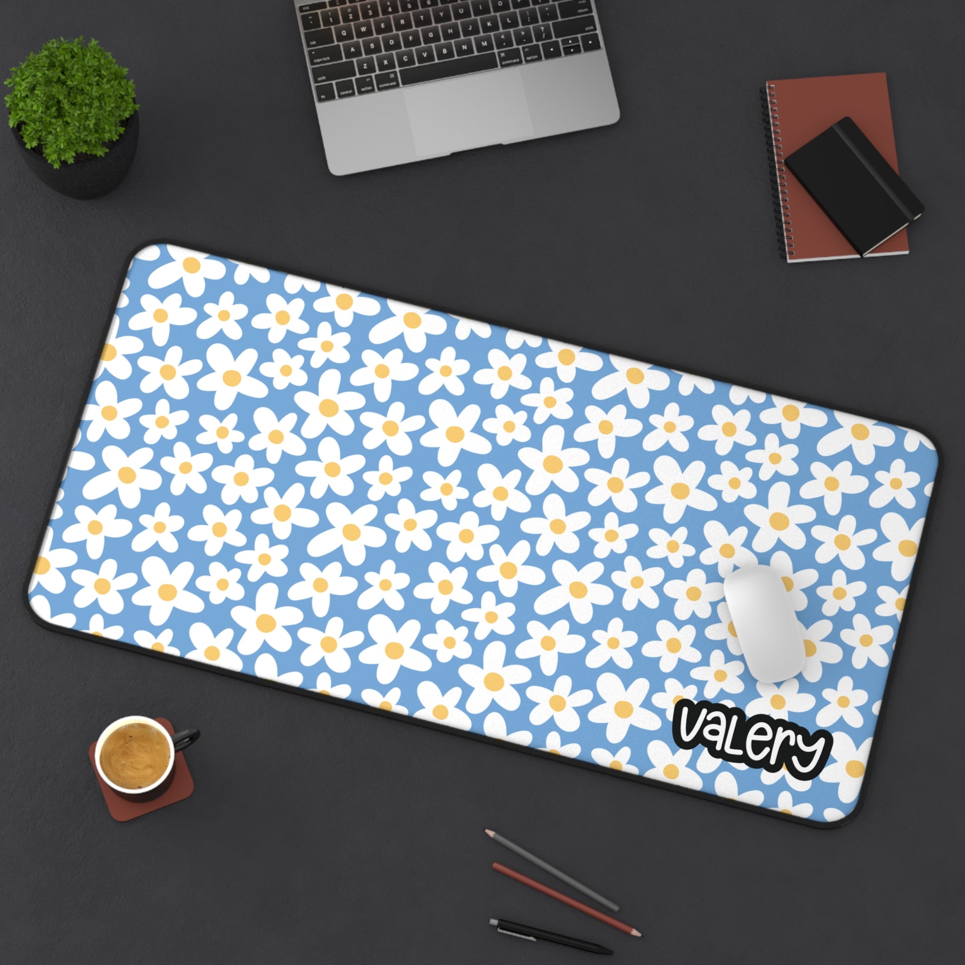 Personalized Cute Daisies Desk Mat Baby Blue| Cute Desk Pad