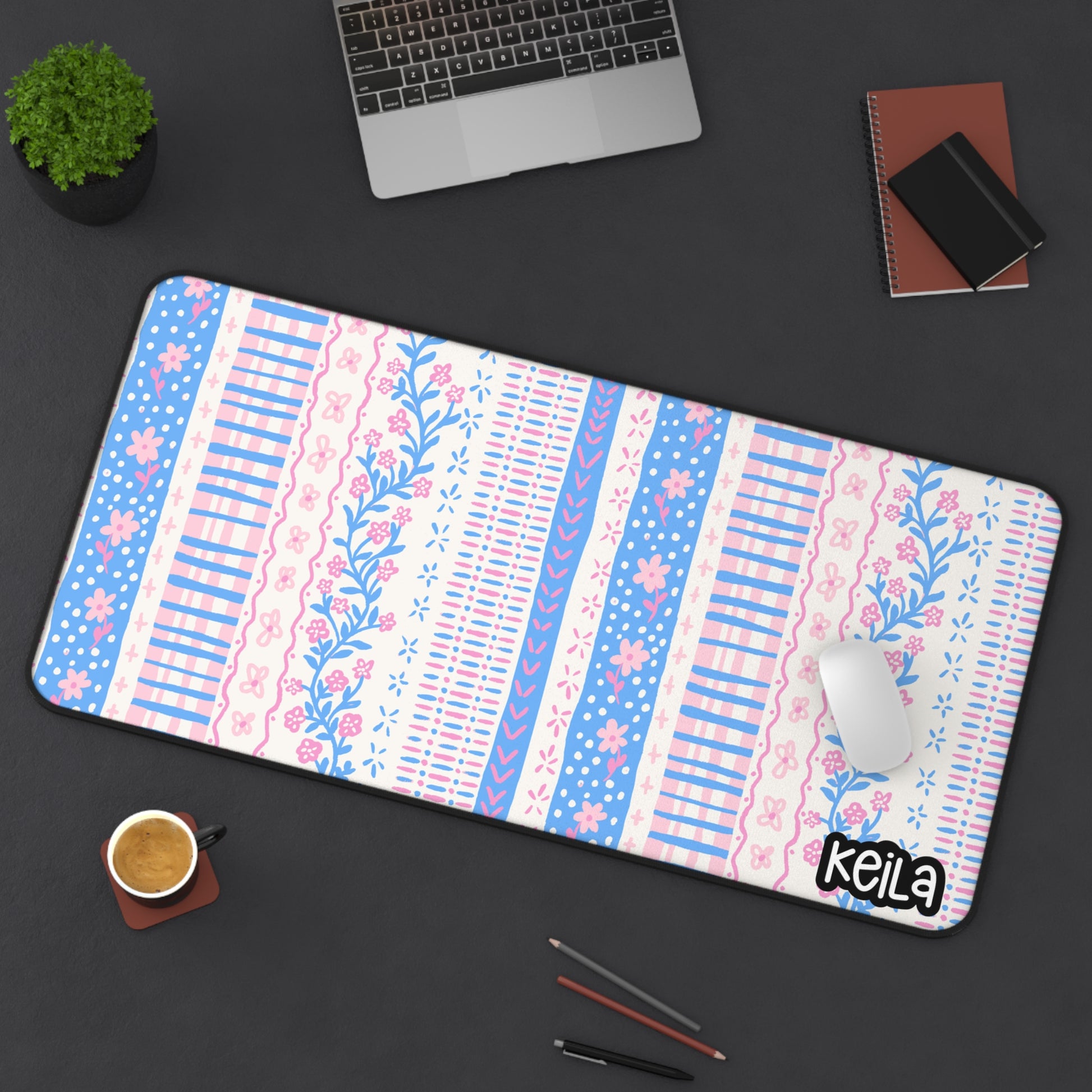 Personalized Coquette Floral & Geometric Desk Mat – Stylish & Functional Workspace Accessory