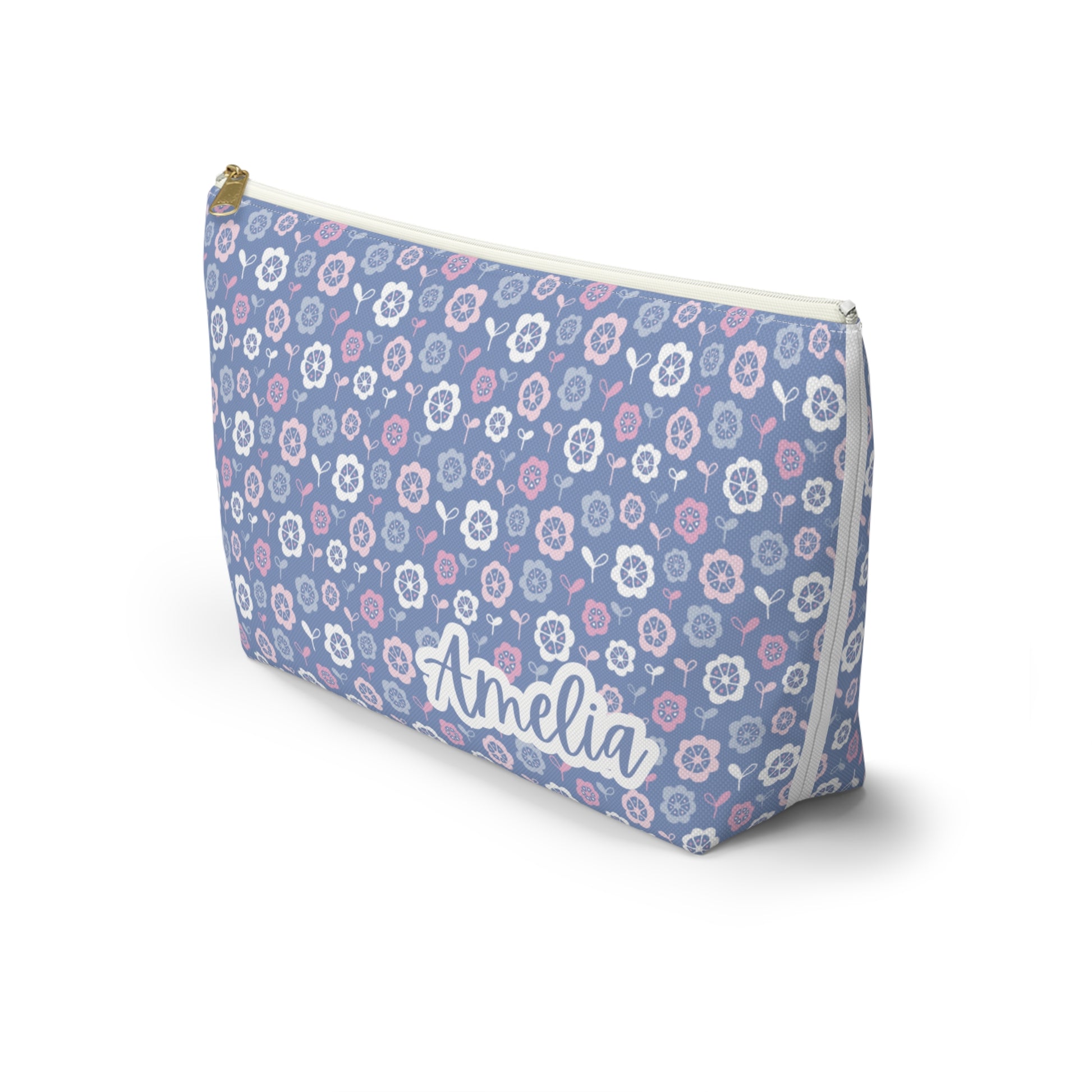 This personalized makeup bag can be used for pretty much anything. They make excellent personalized accessories bag, pencil cases and cosmetic travel bags. They are constructed from a durable material with a zipper closure.