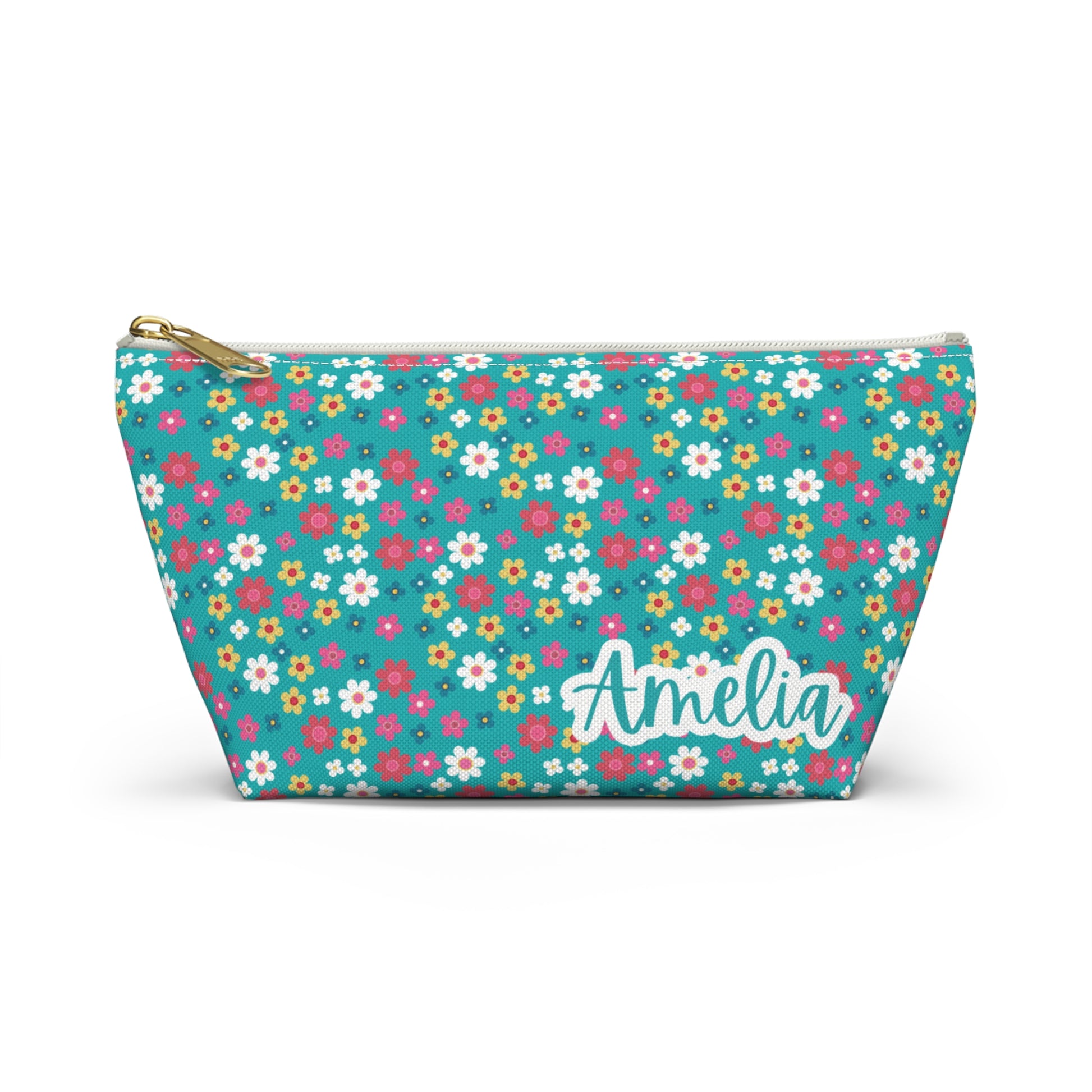 This personalized makeup bag can be used for pretty much anything. They make excellent personalized accessories bag, pencil cases and cosmetic travel bags. They are constructed from a durable material with a zipper closure.